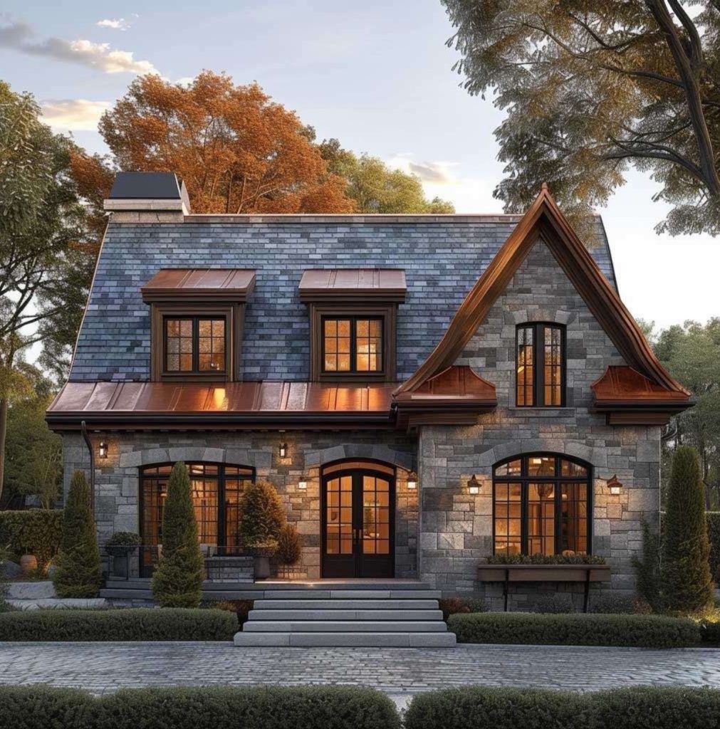 French-style houses are known for their elegant and sophisticated design, often featuring steeply pitched roofs, dormer windows, and a sense of symmetry. - Materials